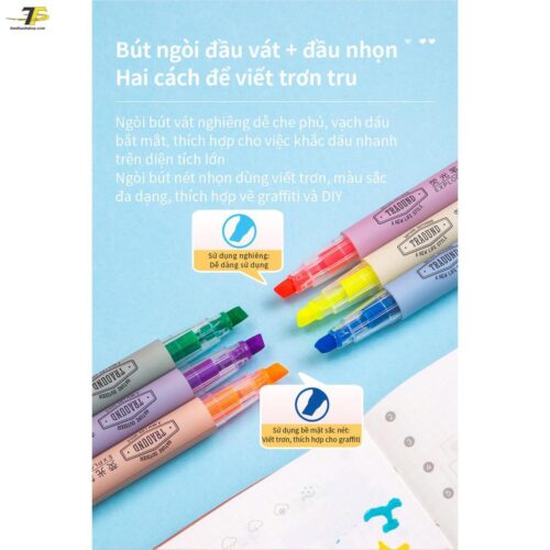 • Đầu bút vát nghiêng thông minh: Thiết kế đầu ngòi linh hoạt giúp bạn dễ dàng thay đổi nét vẽ (nét dày để tô khối, nét mảnh để gạch chân).