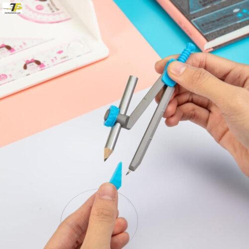 • Compa kim loại chắc chắn: Chân compa được làm từ hợp kim kẽm bền bỉ, không bị lỏng lẻo khi quay vòng tròn lớn. Cơ chế giữ ngòi chì kim giúp nét vẽ luôn thanh mảnh và chính xác tuyệt đối.