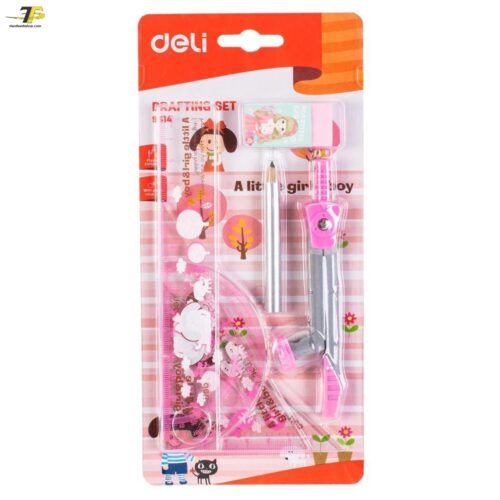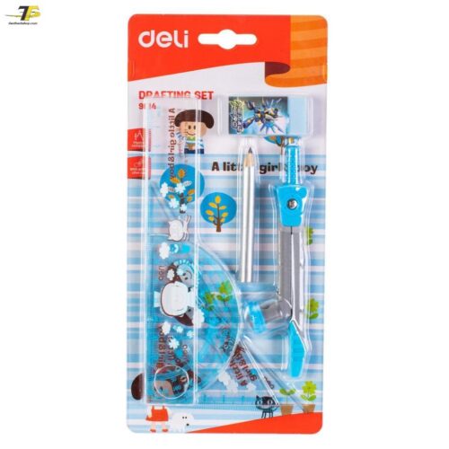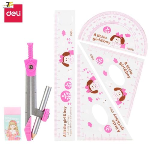 Bộ compa thước kẻ 7 món, màu hồng / xanh dương – Deli 9614 (E9614)