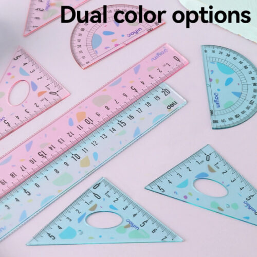 • 🏗️ Chất liệu nhựa PS cao cấp: Có độ bền cao, bề mặt nhẵn mịn và độ trong suốt tuyệt vời, cho phép bạn quan sát rõ nội dung bên dưới khi đang đo vẽ.