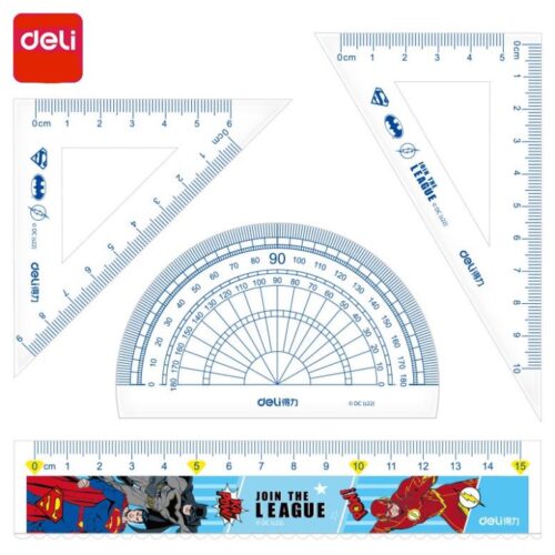 Bộ thước kẻ, thước đo độ, eke – Bộ dụng cụ học tập 4 chiếc – Deli 79701 (15cm) / 79702 (20cm)
