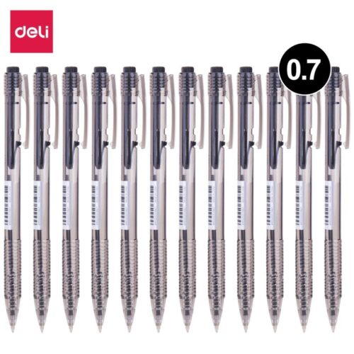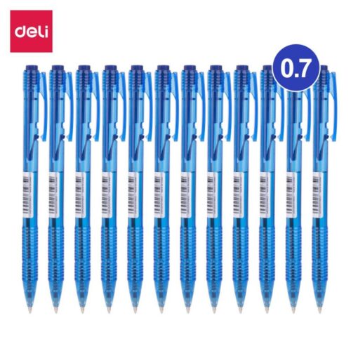 Bút bi bấm ngòi 0.7mm không đệm tay Deli EQ00120 / EQ00130 – mực Xanh/Đen