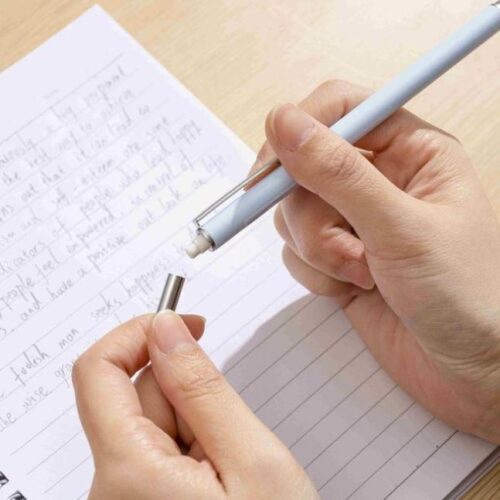 • Bấm nhẹ ở đuôi bút để đẩy ngòi chì ra một khoảng vừa đủ (khoảng 2-3mm) để tránh làm gãy ngòi khi viết. ✏️