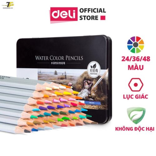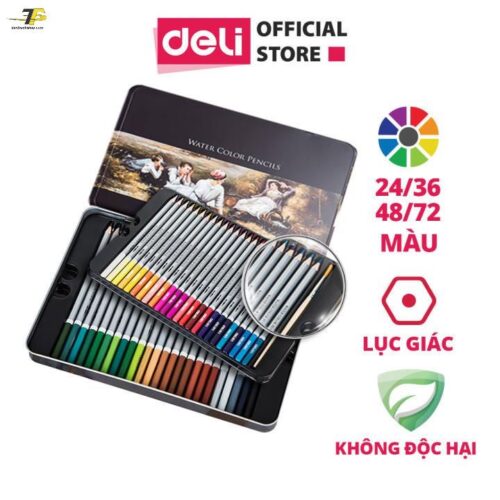 🎨 Mô tả Sản Phẩm: Bộ Bút Chì Màu Nước Cao Cấp Deli – Tặng Kèm Cọ Tán, Màu Sắc Tươi Sáng, Lõi Chì Mềm Mịn (24/36/48 Màu)