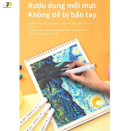 - Mực cồn chất lượng cao: Mực khô nhanh, không làm nhòe giấy và có khả năng chồng màu (layering) cực tốt, giúp tạo hiệu ứng chuyển màu mịn màng.