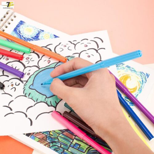- Ngòi bút 1.0mm linh hoạt: Kích thước ngòi chuẩn giúp bé vừa có thể tô những mảng màu lớn, vừa có thể đi nét chi tiết một cách mượt mà, không gây rách giấy.