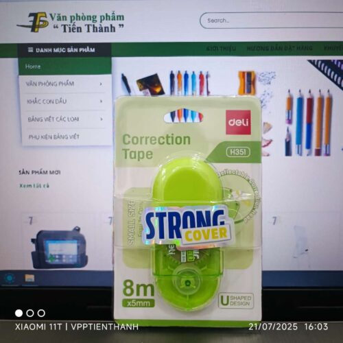 - Độ che phủ hoàn hảo: Băng xóa màu trắng đục, bám dính tốt trên nhiều loại giấy, che phủ hoàn toàn mực bút bi, bút gel mà không để lại vết hằn.