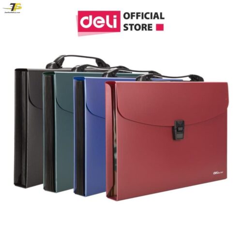 Cặp tài liệu A4 13 ngăn Deli 5557 (E5557) – Đen/Xanh/Đỏ/Xanh lá