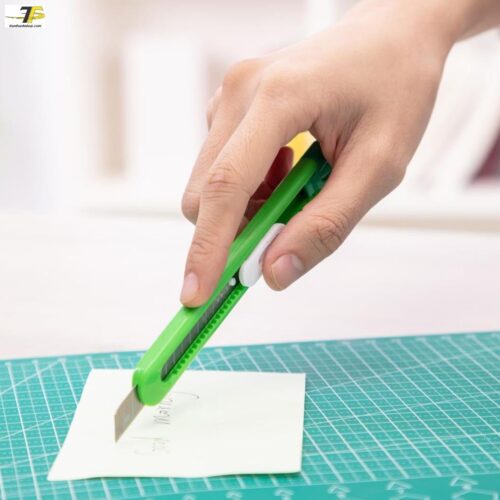 - 🔪 Lưỡi dao thép hợp kim SK5: Lưỡi dao 9mm được gia công từ thép SK5 cao cấp, đảm bảo độ sắc bén vượt trội, giúp đường cắt ngọt, mịn và không làm xơ rách giấy.