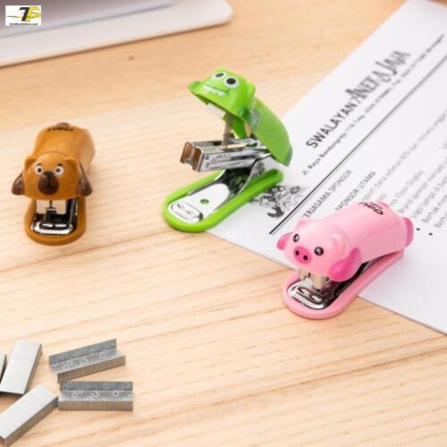 Dập ghim mini 12 trang + 1000 ghim – gấu nâu, lợn hồng, cá sấu xanh – Deli 452 ( E0452)