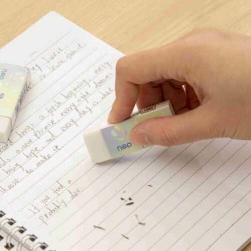 - Lưu ý: Luôn giữ lại vỏ bọc giấy để bảo vệ cục tẩy luôn trắng sạch, không bị bám chì từ tay vào.