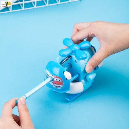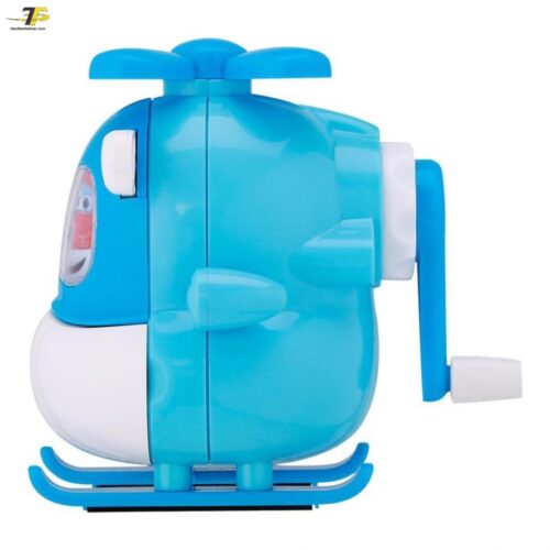 • Thiết kế hình máy bay trực thăng độc đáo: Lấy cảm hứng từ các nhân vật Super Wings, chiếc gọt chì có hình dáng máy bay trực thăng vô cùng bắt mắt. Đây không chỉ là dụng cụ học tập mà còn là món đồ chơi trang trí sinh động trên bàn học của bé.