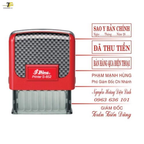 - Công dụng: Đóng dấu tên cá nhân, dấu chức danh, dấu số điện thoại, dấu “ĐÃ THU TIỀN”, “SAO Y BẢN CHÍNH”.