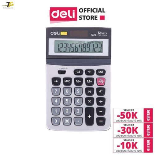 🔢 Mô tả Sản Phẩm: Máy Tính Kỹ Thuật 12 Số Deli E1222 – Màn Hình LCD Lớn, Nguồn Năng Lượng Kép, Phím Bấm Êm Ái